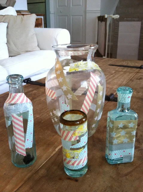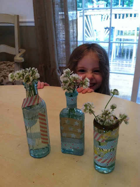 My supplies for this project were nothing more than a stash of Washi tape and my favorite little girl ever. It was a fun little project for her and she got to use full reign of her artistic freedom with where and how she wanted to lay each piece of tape, (which I ripped off the rolls and just stuck onto the edge of the table).