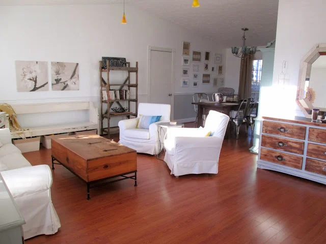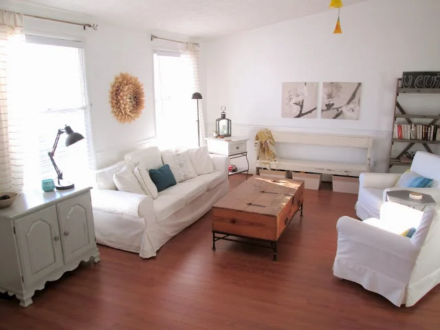 It was actually quite a beautiful rug and served us well for the past 3 years. But as our style has really developed in that time toward a more rustic, edgy, urban look, the rug started looking out of place. It sold fast and this is our space now: