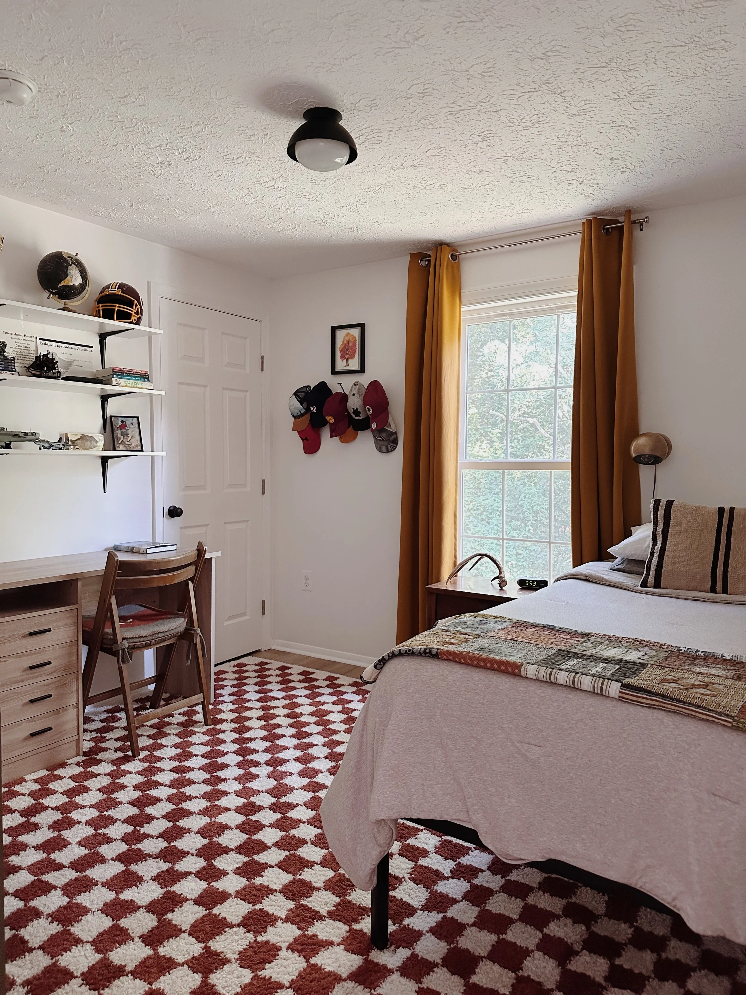 Colin is our oldest by one minute and he has never had his own room until now. He and his twin sister, Shire, shared a room until they were about 3-4yrs old, and then Shire and Mason, our youngest, switched. Colin and Mason are just under 17 months apart and they have shared a room for the past decade. And I gotta tell you, it has really been a gift in more ways than I could have ever imagined. They are very different from each other, yet they’ve built a closeness that has been established over ten years of extreme laughter as well as frustration they’ve had to work through together. Their bond to one another is one of the sweetest gifts to my heart, and when we were able to give them their own room after the work on our home was complete, I felt some grief welling up! But as they grow up and use their spaces very differently (Colin is a collector of all kinds of things and Mason doesn’t like clutter), it became apparent that being in their own space would give them each the chance to establish themselves more fully in this home. Colin now has more freedom to spread out with things he draws and creates without closing in on Mason. I love that they still choose to spend the bulk of their free time together and I often see them coming out of each others rooms for a visit before bed.