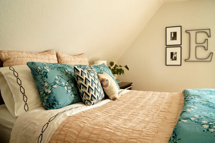 Most bedding is from TJMaxx with the addition of decorative pillows that Maggie sewed herself. Many of the furniture pieces, like the children's beds, are upcycled redos, as well as other key furniture pieces that were needed. You can read more about the specific DIYs of each room here and here!