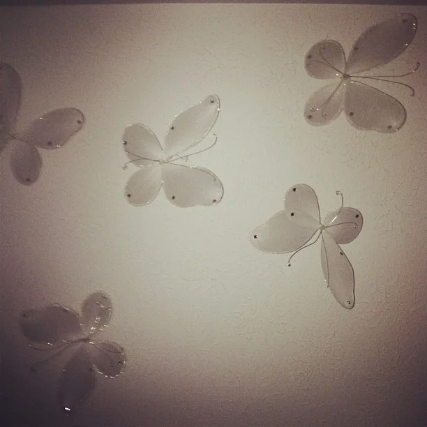 Watching Shire's hanging butterflies dance under the ceiling, (by pointing a fan on them...magic to a 3yr old!)