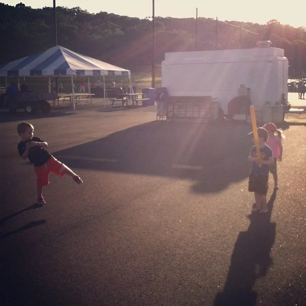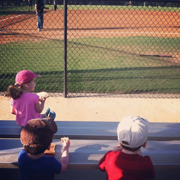 Watching Daddy play baseball over a pb&j picnic...